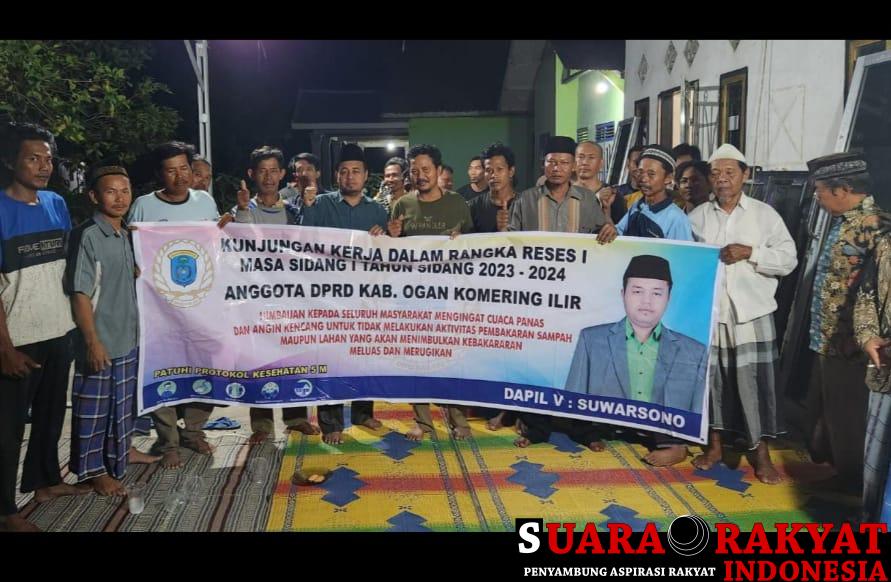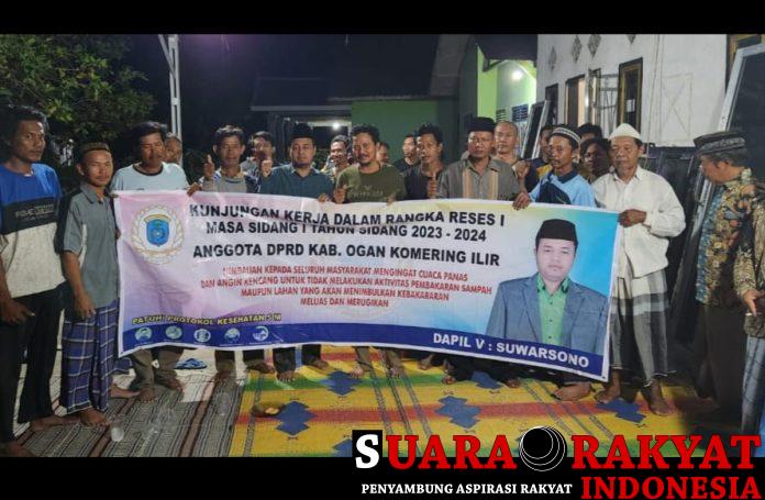Kayuagung, SRIndonesia.NET – Suwarsono, melaksanakan kunjungan kerja dalam rangka menggelar reses I masa persidangan tahap I tahun sidang 2023-2024 di Daerah Pemilihan (Dapil) 5 Kecamatan Lempuing dan Kecamatan Lempuing Jaya, Kabupaten Ogan Komering Ilir. Reses tersebut dihadiri para tokoh masyarakat, tokoh pemuda,ctokoh agama serta para kaum perempuan. Tampak masyarakat yang hadir sangat antusias.