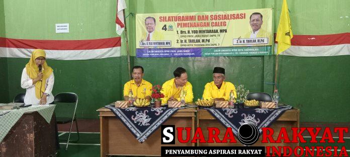 untuk pemilu Legislatif yang akan digelar tanggal 14 Pebruari 2024, kami diminta dan di calonkan oleh Partai Golkar setelah kami pertimbangkan alhamdullilah kami siap untuk maju menjadi Calon Legislatif DPRD untuk Kota Tasikmalaya Dapil 3 yang terdiri dari Kecamatan Tamansari Cibeureum dan Kecamatan Purbaratu pada kesempatan ini kami menggelar masa Kampanye selama 75 hari, dan hari ini kami mengadakan Silaturahmia dan Sosialisasi kepada masyarakat Kecamatan Tamansari dalam rangka untuk meningkatkan popularitas dan elektabilitas sehingga pada saatnya nanti masyarakat menjatuhkan pilihannya kepada kami sebagai calon DPRD dapil 3 untuk kota Tasikmalaya,”ucap Ir, H.Tarlan M,pd Caleg DPRD Kota Tasikmalaya dari Partai Golkar saat di wawancari Media selasa 05/12/2023.