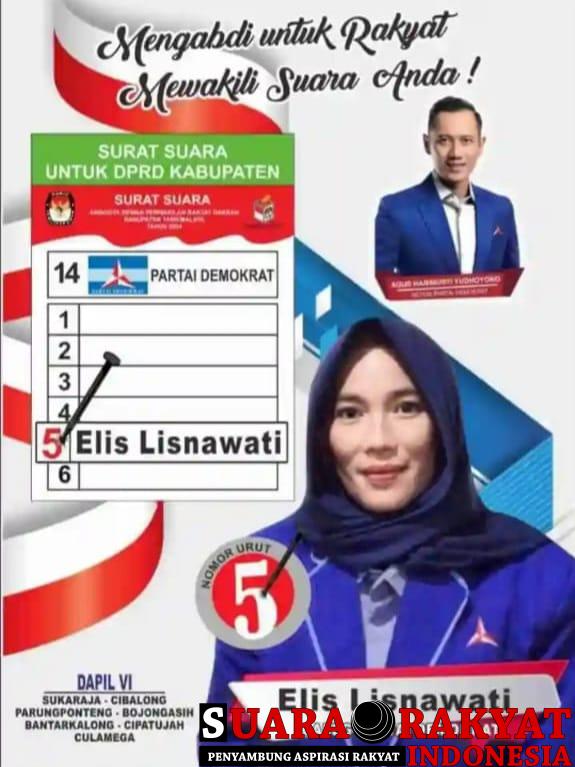 Kabupaten Tasik, SRIndonesia.NET, — Elis Lisnawati, A.Ma Pd. Calon Legislatif Dewan Perwakilan Rakyat Daerah (CALEG DPRD) Dapil (6) nomor urut (5), dari Partai Demokrat untuk Kabupaten Tasikmalaya dan jika terpilih nanti akan merubah Stigma Pemerintahan saat ini dan ingin mensejahterakan masyarakat dengan cara memperdayakan sumber daya masayarakat itu sendiri, Rabu 27/12/2023.