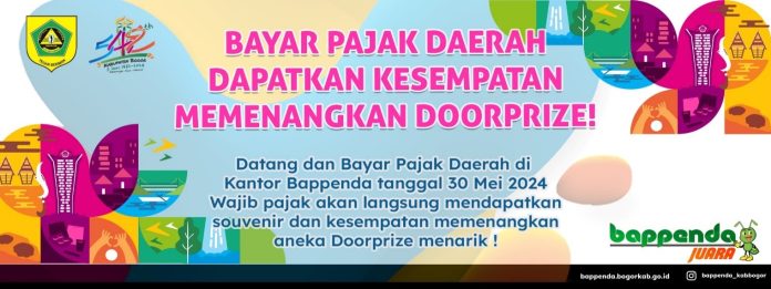 Dalam rangka memperingati Hari Jadi Bogor (HJB) Ke-542 Tahun 2024, Badan Pengelolaan Pendapatan Daerah (BAPPENDA) Kabupaten Bogor telah menyelenggarakan kegiatan Gebyar Pembayaran Pajak Daerah yang berorientasi untuk menarik Wajib Pajak (WP) dalam melakukan kewajibannya membayar pajak. Kegiatan dilaksanakan di Ruang Pelayanan Bappenda Kabupaten Bogor pada Hari Kamis Tanggal 30 Mei 2024, Wajib Pajak yang datang secara langsung untuk melakukan pembayaran pajak mendapatkan souvenir dan berkesempatan memenangkan Doorprize yang menarik. Kegiatan tersebut mendapatkan respon yang positif dari Wajib Pajak sehingga realisasi pembayaran pajak yang diterima pada hari tersebut sangat signifikan, yakni Rp 6.435.181.685,00, jauh lebih tinggi dari rata-rata penerimaan harian sebesar Rp 1.849.624.042,00.