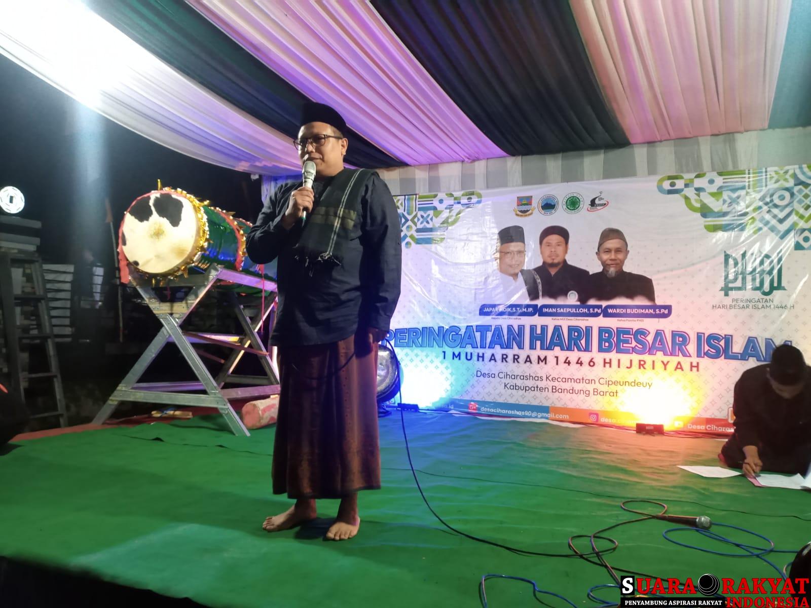 Kepala Desa Ciharashas Japar Sidik, ST.M.IP dalam sambutannya mengatakan terima kasih kepada semua pihak dan warga masyarakat yang telah Pro Aktif yang begitu antusias sehingga pelaksanaan peringatan Tahun Baru Islam 1 Muharam 1446 H/2024 M dapat berjalan dengan lancar.