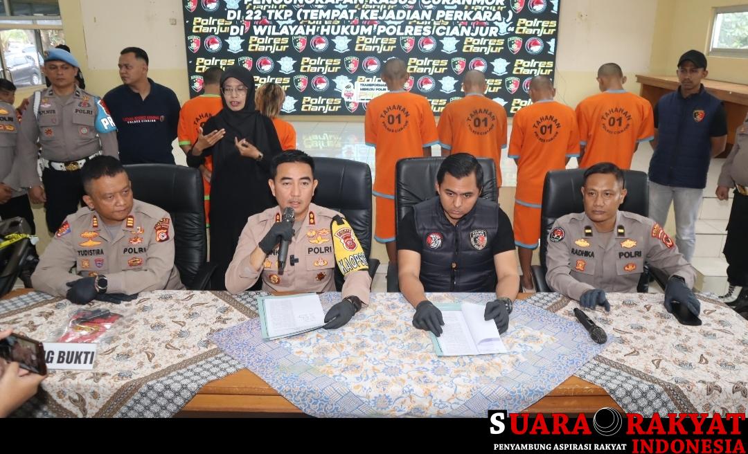 SRIndonesia Cianjur – Polres Cianjur ungkap kasus tindak pidana pembunuhan anak punk yang terjadi di Kecamatan Cibeber, konferensi pers tersebut berlangsung di Aula Primkoppol Polres Cianjur dan dipimpin oleh Kapolres Cianjur AKBP Rohman Yonky Dilatha, S.I.K., M.Si., M.H., Selasa (10/09/2024).