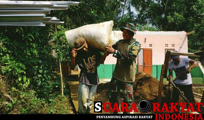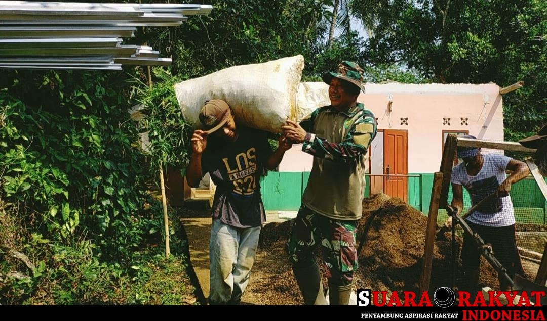 Kopka Bowo salah satu anggota Satgas TMMD ke 122 Kodim 0608/Cianjur yang sedang membantu warga. menurutnya, semua bantuan ini dilakukannya dengan senang hati dan tanpa pamrih.