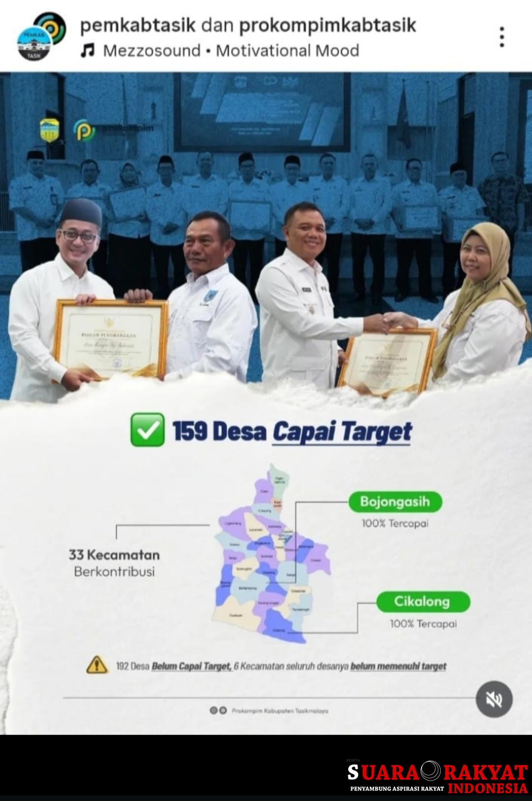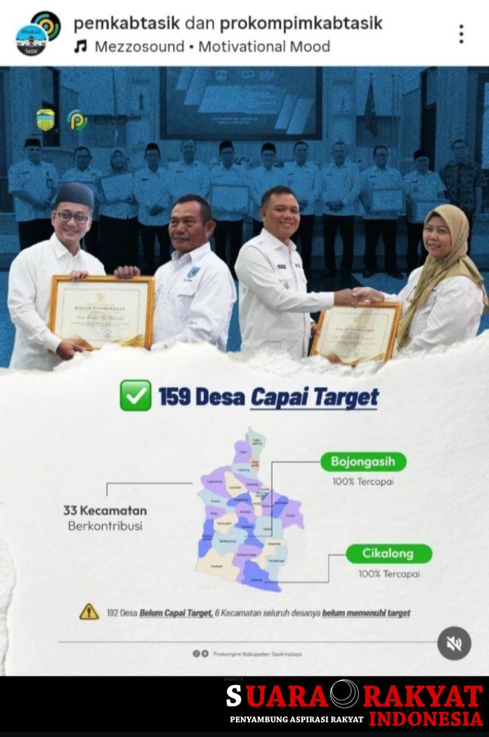 Tasikmalaya– berita suara rakyat Indonesia. Com Pemerintah Kabupaten Tasikmalaya melalui Badan Pengelola Keuangan dan Pendapatan Daerah (BPKPD) memberikan penghargaan bergengsi kepada 159 desa yang dinilai tercepat dan terbaik dalam pelunasan Pajak Bumi dan Bangunan Perdesaan dan Perkotaan (PBB-P2) Tahun Anggaran 2025.
