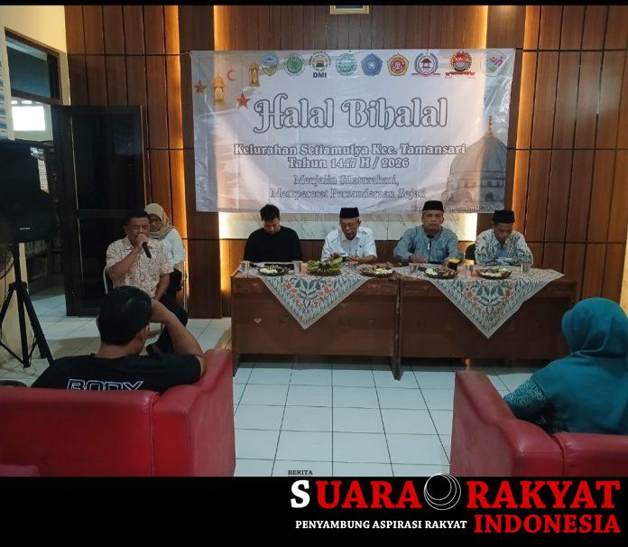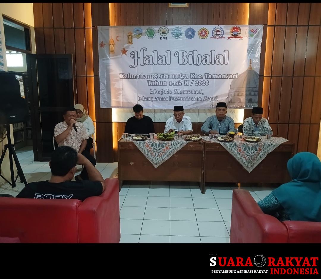 Berita Suara Rakyat Indonesia.com. Berita Kota Tasikmalaya, –Kelurahan Setiamulya yang terletak di Kecamatan Tamansari, Kota Tasikmalaya, Jawa Barat, kembali menyelenggarakan acara Halal Bihalal Idul Fitri 1447 H/2026 M. Kegiatan yang menjadi tradisi tahunan ini dihadiri oleh perangkat kelurahan RTRW, LPM, Karang Taruna, MUI, DMI, Kader Posyandu, Kader PKK, Tokoh Masyarakat serta pihak terkait seperti Bhabinkamtibmas Polsek Tamansari, dengan tujuan mempererat tali silaturahmi dan menyegarkan hubungan antar warga setelah bulan suci Ramadhan. rabu 01/04/2026.